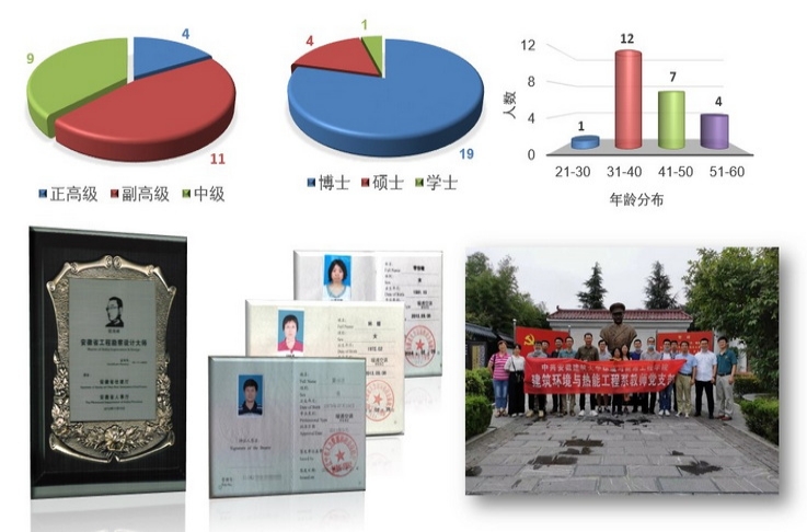 本专业现有专业教师24人,其中教授4人,副教授11人,讲师9人,具有博士学位教师19人,占教师比例接近80%;博士生导师3人,硕士生导师20人;拥有安徽省勘察设计大师(暖通)1名,注册设备工程师(暖通)5名、注册监理工程师1名、注册安全评价师1名。目前已经形成一支年龄结构合理、学术水平高、科学研究和工程实践并举的高水平教师队伍。