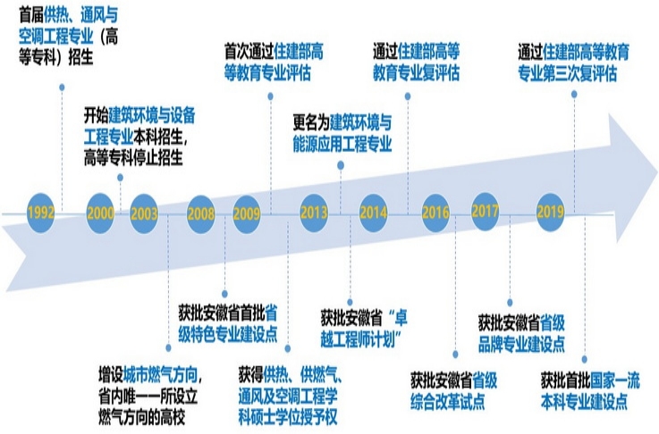 beat365官方网站是安徽省最早创办建筑环境与能源应用工程专业的院校之一,1992年开始首届供热、通风与空调工程专业招生;2003年,抓住安徽省燃气工程发展的机遇,增设了城市燃气方向,成为省内唯一一所设立燃气方向的高校;2008年专业被评为安徽省首批省级特色专业建设点;2009年专业通过住建部高等教育建筑环境与设备工程专业评估,同年,获得供热、供燃气、通风及空调工程学科硕士学位授予权;2013年被列为安徽省省级卓越工程师计划专业;2014年专业通过住建部专业教育复评估;2016和2017年分别被列为安徽省省级综合改革试点和省级品牌专业建设点;2019年通过住建部高等教育专业第三次复评估,同年入选首批国家级一流专业建设点。