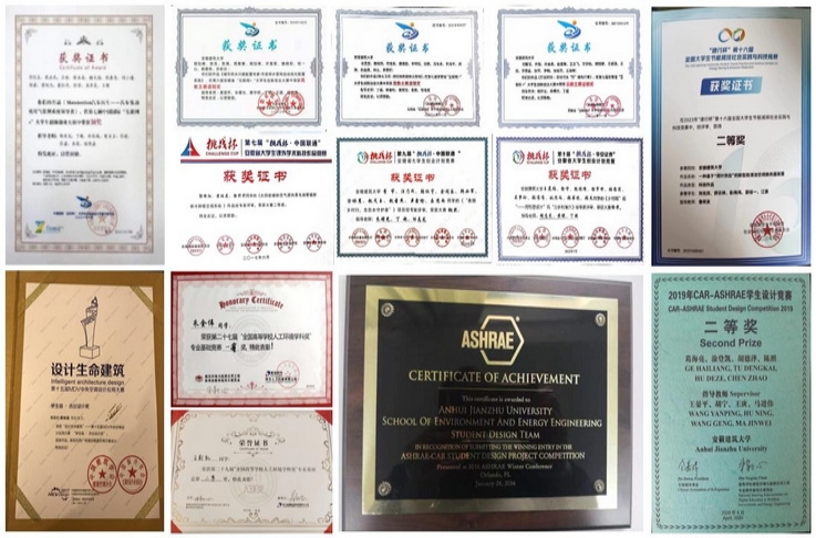 近五年,本专业学生获国家及省级大学生创新训练项目50余项,在全国大学生节能减排社会实践与科技竞赛、全国高等学校人工环境学科竞赛和安徽省大学生工程创新与实践大赛等各类学科竞赛中获国家及省部级奖100余项。在第7届CAR-ASHRAE学生设计竞赛中,建环学子喜获全国一等奖并作为中国学生代表赴美参加供热制冷与空调工程师学会年会。