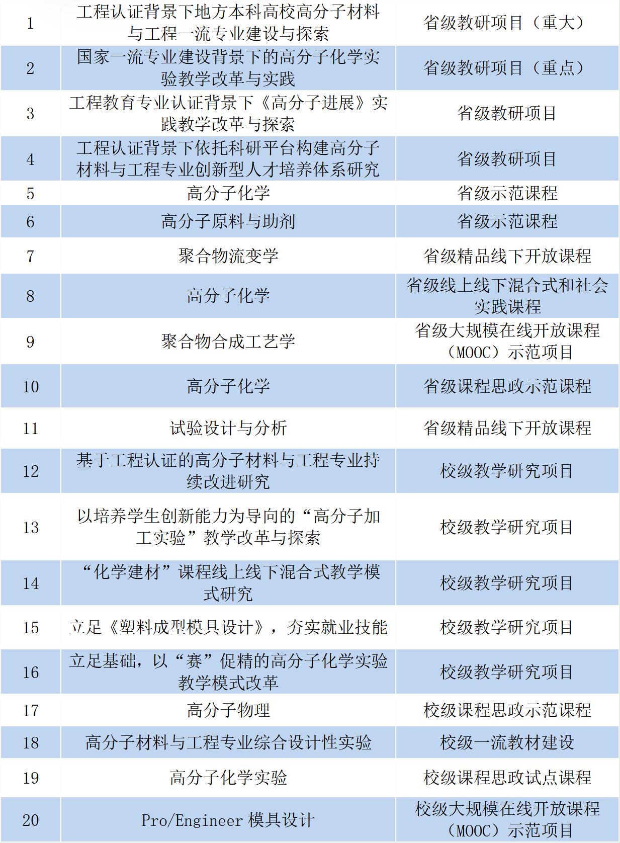 本专业现有专业教师18名,其中教授9人、副教授6人,分别占教师总人数的50%、33.3%;具有博士学位教师15人。“高分子材料与工程专业课程教学团队”2016年被评为省级教学团队、“高分子材料与工程系”2021年被确立为省级示范基层教学组织,同时获beat365官方网站“本科教学先进集体”称号。