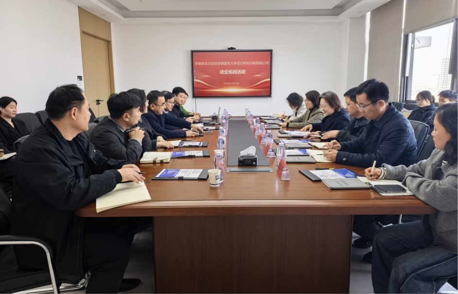 随后,设计总院董事、总经理曹宏伟主持召开了专项座谈会,曹宏伟介绍了设计总院的发展历程、组织架构、业务布局及人才队伍建设等情况。他表示,设计总院依托学校学科优势,在市政建筑、城乡规划、风景园林等领域积累了丰富的实践经验,目前已有多名安农大优秀毕业生在设计总院成长为技术骨干。期待双方在人才联合培养、实习实践基地共建、科研攻关等方面深化合作,实现资源共享、优势互补。在互动交流环节,副总经理何成详细介绍了设计总院的资质体系、核心业务布局及近年来取得的标志性成果;副总经理马睿围绕未来合作提出具体构想:一是依托双方资源优势,在老旧小区改造、乡村振兴、学生实习实践平台建设等方面深化务实合作;二是联合举办多学科主题设计竞赛,以赛促学、以赛促创、以赛促融;三是聚焦城市更新、历史文化保护和乡村建设等重点领域,加强课题研究与项目协同,持续推动产学研深度融合。