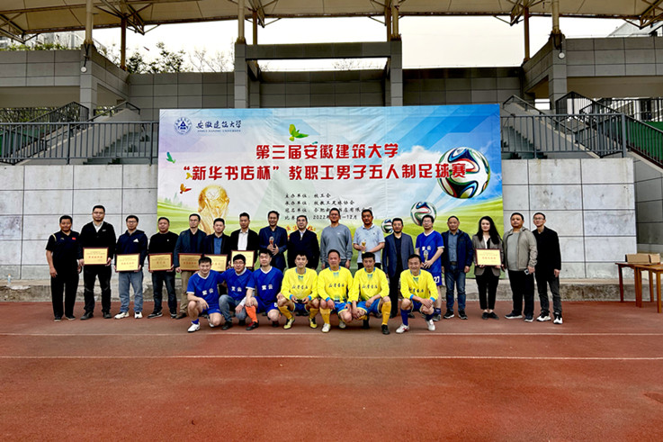 本网讯 4月12日,由校工会主办、教工足球协会承办、合肥新华书店有限公司冠名的第三届beat365官方网站“新华书店杯”教职工男子五人制足球比赛在南校区体育场圆满落幕。校党委常委、副校长蔡国军为获奖单位和选手颁奖并宣布比赛圆满闭幕。
