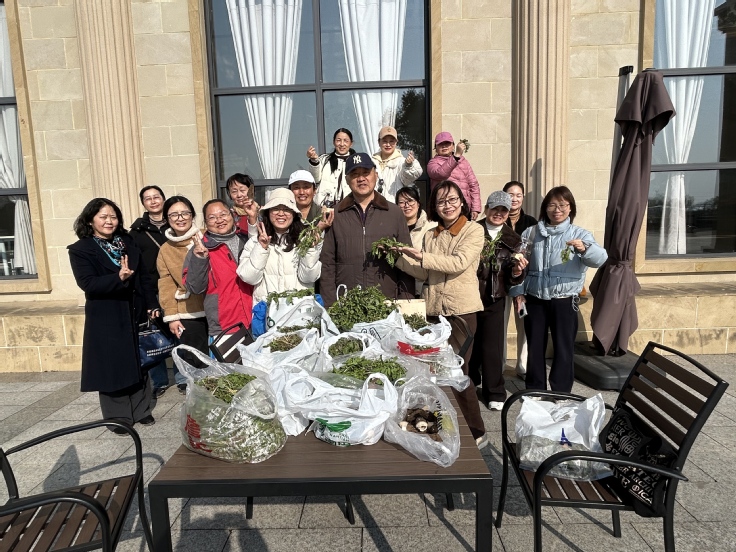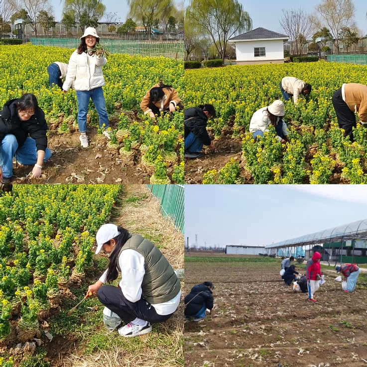 阳春三月,五里桥村的田野绿意盎然,一簇簇荠菜在春风中舒展嫩叶。女职工们手持小铲,穿梭在田埂间,弯腰寻觅着野菜的踪迹。“荠菜叶子有锯齿,根茎带点紫红色……”大家相互探讨,教学如何辨识野生荠菜,不时交流着家乡的野菜烹饪方法。不到两小时,每个人的袋子里都装满了鲜嫩的荠菜,欢声笑语中满载而归。