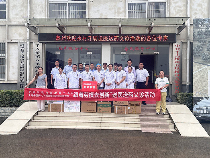 本网讯   918日上午,安徽省教科文卫体工会携手上海中医药大学附属曙光医院安徽医院来学校定点帮扶村——舒城县千人桥镇五里桥村,开展“跟着劳模去创新”送医送药义诊活动,捐赠价值五万元的药品和医疗设备。省教科文卫体工会副主席、二级调研员李晓燕,上海中医药大学附属曙光医院安徽医院党委组织员翟从永、工会主席江妍妍,校工会以及千人桥镇主要负责同志参加活动。