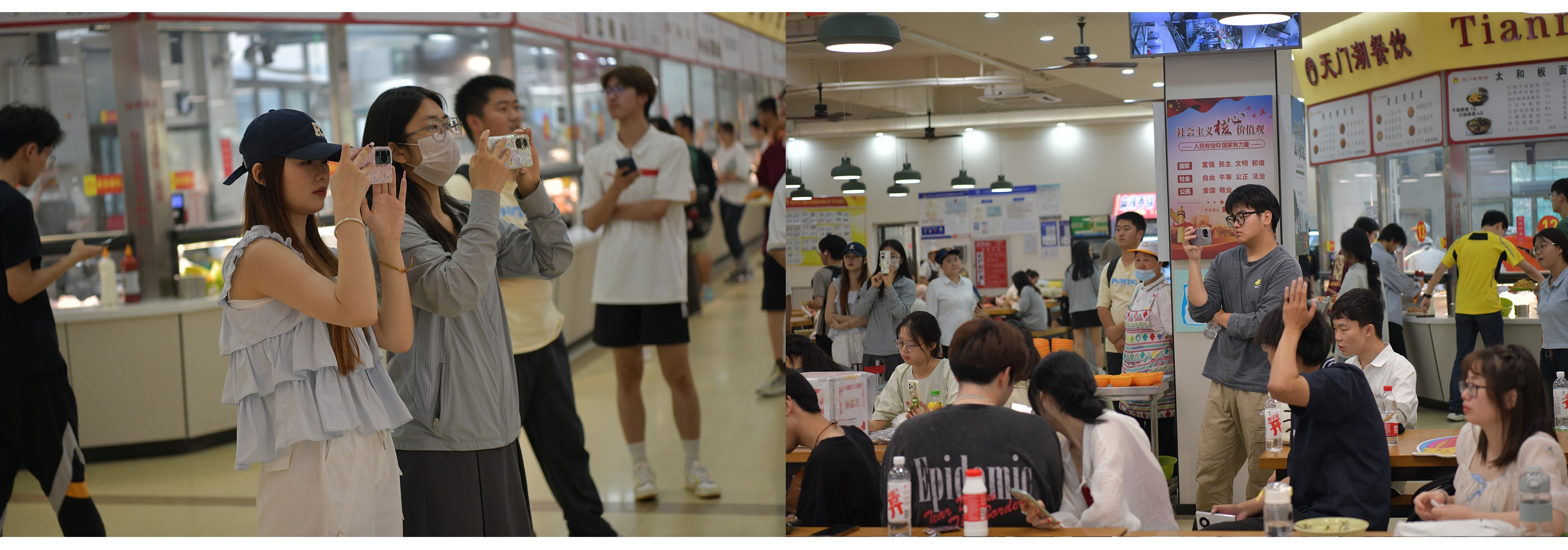 本网讯 6月13日晚,校公共艺术俱乐部在南校区北苑食堂一楼举办了毕业季快闪活动,现场百余名学生参与互动。
