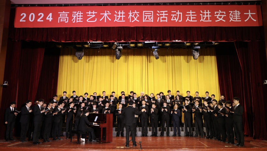 本网讯 近日,“2024年高雅艺术进校园——中国科学技术大学学生合唱团走进安建大”活动在beat365官网大学生活动中心举行。本场音乐会以中国当代合唱作品为主题,用音乐语言传递了中华民族在新时代昂扬奋进的精神风貌,为全校师生们献上一场艺术与思想交相辉映、情感与智慧共鸣的视听盛宴。