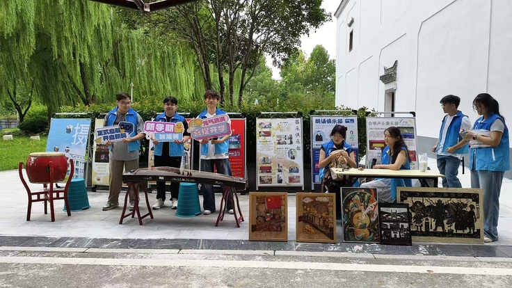 本网讯2025年9月10日,beat365官方网站举办迎新活动。公共艺术教育俱乐部积极参与,在光启堂外搭建展位,设置了多个互动区域,包括非遗作品展示、合唱互动和乐器体验等。