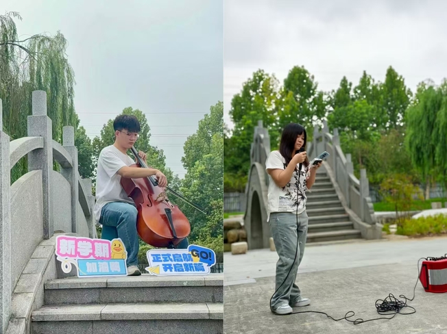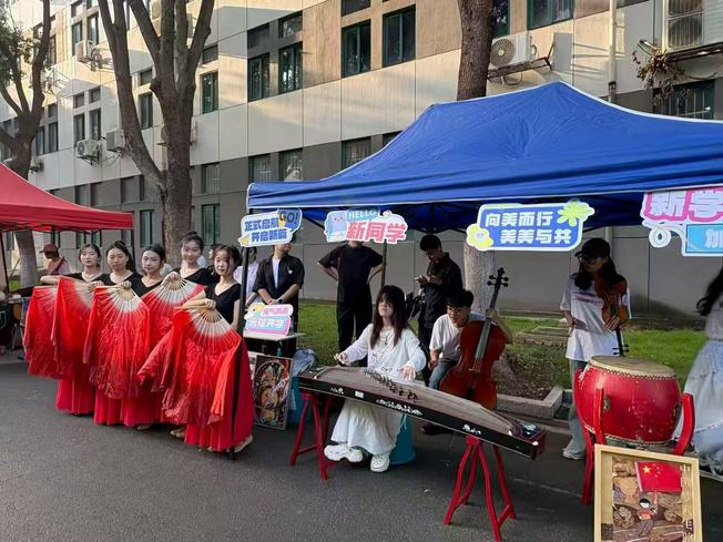 俱乐部成员在现场进行了多项才艺展示和教学互动,包括弹古筝、拉大提琴、吹笛子、打鼓、跳中国舞、拉小提琴和合唱表演等,吸引大量新生驻足观看和体验。同学们还邀请新生亲手尝试乐器演奏,在实践过程中感受艺术的乐趣。
