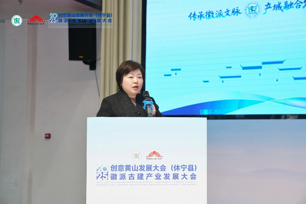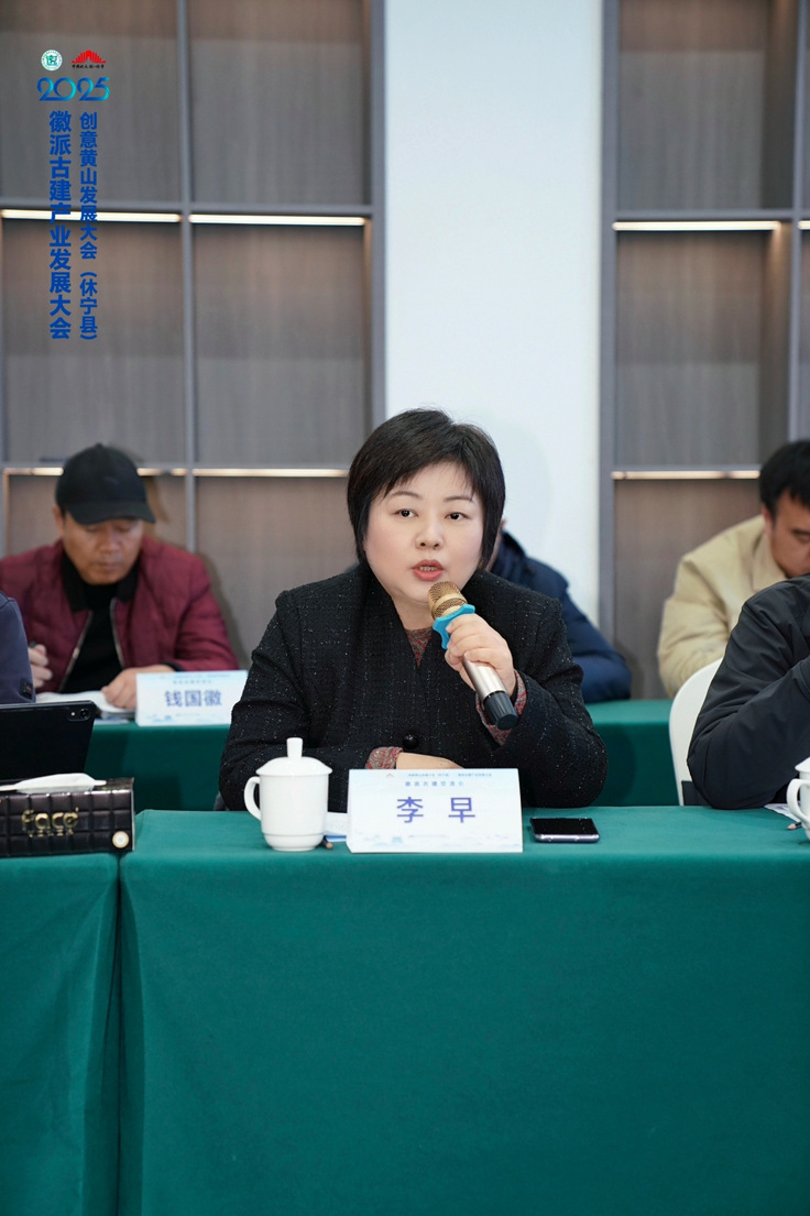 在徽派古建发展专题座谈会及主旨讲话中,李早指出,徽派古建作为中国传统建筑的杰出代表,蕴含着深厚的历史文化底蕴和独特的艺术价值,对于弘扬中华优秀传统文化、推动文化产业高质量发展具有重要意义。学校长期致力于挖掘徽文化的育人功能,将徽匠精神融入人才培养全过程,积极搭建产学研合作平台,与地方政府、企业深度联动,并将发挥学科优势和人才优势,在古建数字化保护、修缮技术研发、业态创新融合等方面持续发力,为徽派古建的保护传承与创新发展贡献更多智慧和力量。她呼吁社会各界共同关注徽派古建,携手保护好这份珍贵的文化遗产,让徽派古建在新时代绽放出更加耀眼的光芒。