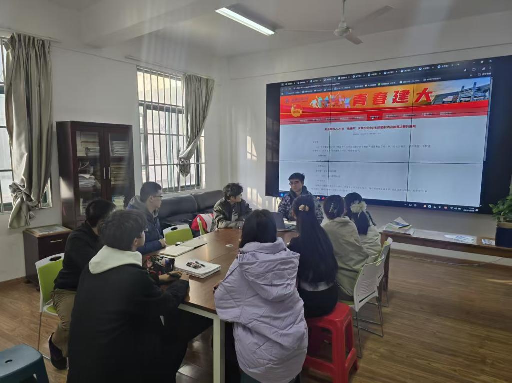 青年科创实践中心由学生主任团、科创办公室、科创活动部和科创资源部组成。科创办公室主要工作是收集整理 “挑战杯” 申报材料、“三下乡” 实践报告等科创档案,建立电子与纸质双档案库,确保规范归档。科创活动部主要工作是聚焦“挑战杯”系列竞赛,制定校内选拔赛方案,组织宣传动员、报名筛选、作品评审及省级参赛团队培育,并统筹暑期“三下乡”社会实践,组织项目申报审核、赛前培训与安全教育,跟进实践过程并收集成果材料,开展总结表彰与成果展示。科创资源部主要工作是建立校级科创导师资源库,分类整理参赛导师研究方向;根据学生项目需求精准匹配指导教师,组织导师座谈会与项目推进会,并拓展与参赛相关企业、科研机构及校友资源,签订合作协议,争取实践基地、项目资助与技术支持;组织企业走访、实习实践等校企联动活动。