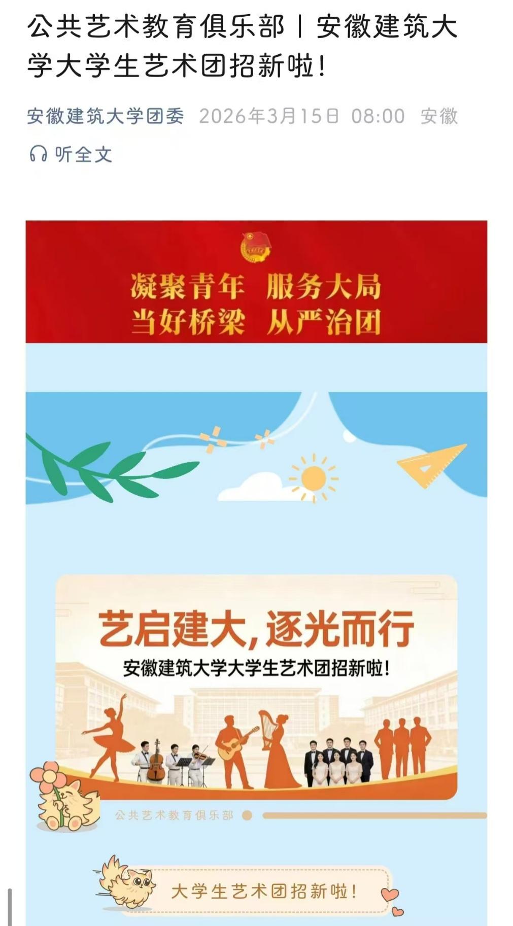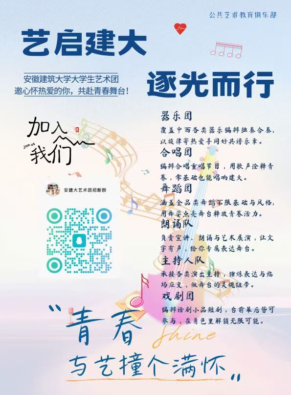 下一步,公共艺术教育俱乐部将认真梳理招新报名情况,开展后续选拔考核工作,同时打磨完善艺术团成立方案,推动高水平艺术团建设落地实施。