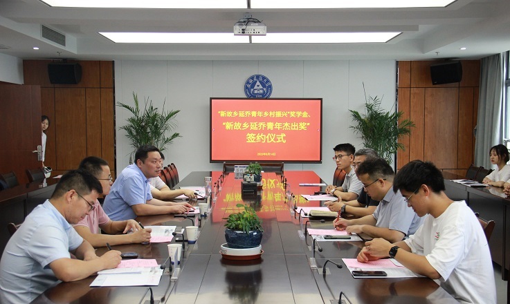 本网讯 2023年7月28日,农业部、发改委、教育部、民政部等九部委联合下发《“我的家乡我建设”活动实施方案》,为认真贯彻实施方案,聚焦乡村人才、文化振兴,延链乡村振兴协同创新创业综合服务平台,立体化打造乡村振兴新引擎。8月14日,学校与新故乡“新故乡延乔青年乡村振兴”奖学金、“新故乡延乔青年杰出奖”签约仪式在南校区实验综合楼21楼第五会议室举行,学校办公室、宣传部、校友工作处、教务处、后勤服务集团等相关单位负责人,新故乡执行董事孙义参加仪式,办公室(党办、校办)主任马宾主持仪式,朱嘉豪、袁海枫等延乔青年团队代表、安徽云旗律师事务所执行主任陈德恒共同见证了签约仪式。