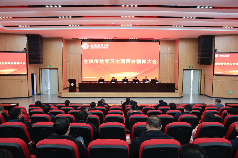 本网讯 3月16日下午14:30,学校在紫云路校区徽风楼二楼报告厅召开传达学习2026年全国两会精神大会。党委书记马文革传达习近平总书记在全国两会期间的重要讲话精神,深刻解读讲话中关于高质量发展、新质生产力、教育科技人才一体化发展等重大论述。他强调,要认真学习贯彻习近平总书记重要讲话和全国两会精神,深入贯彻落实习近平总书记考察安徽重要讲话精神,真抓实干、砥砺奋进,以更加昂扬的姿态推动学校各项事业迈上新台阶,为推进强国建设、民族复兴伟业作出新的更大贡献。
