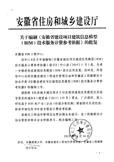 安徽省BIM工程中心,安徽省造价总站,安徽省工程勘察协会3家单位共同主编,安徽省工程勘察协会BIM技术专业委员会参加编制。BIM计费依据适用于新建工业、民用建筑项目、园林景观项目以及市政基础设施项目。
