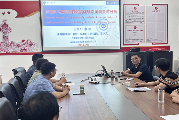 本网讯 7月7日,应土木工程学院邀请,西南交通大学教授、博士生导师潘毅教授做客“易海大讲堂”,在实训楼1402会议室为师生作题为“泸定6.8级地震减隔震建筑震害调查与分析”的学术报告。报告会由土木工程学院副院长陈东主持,执行院长张宁等多位领导、教师参加学术报告会。