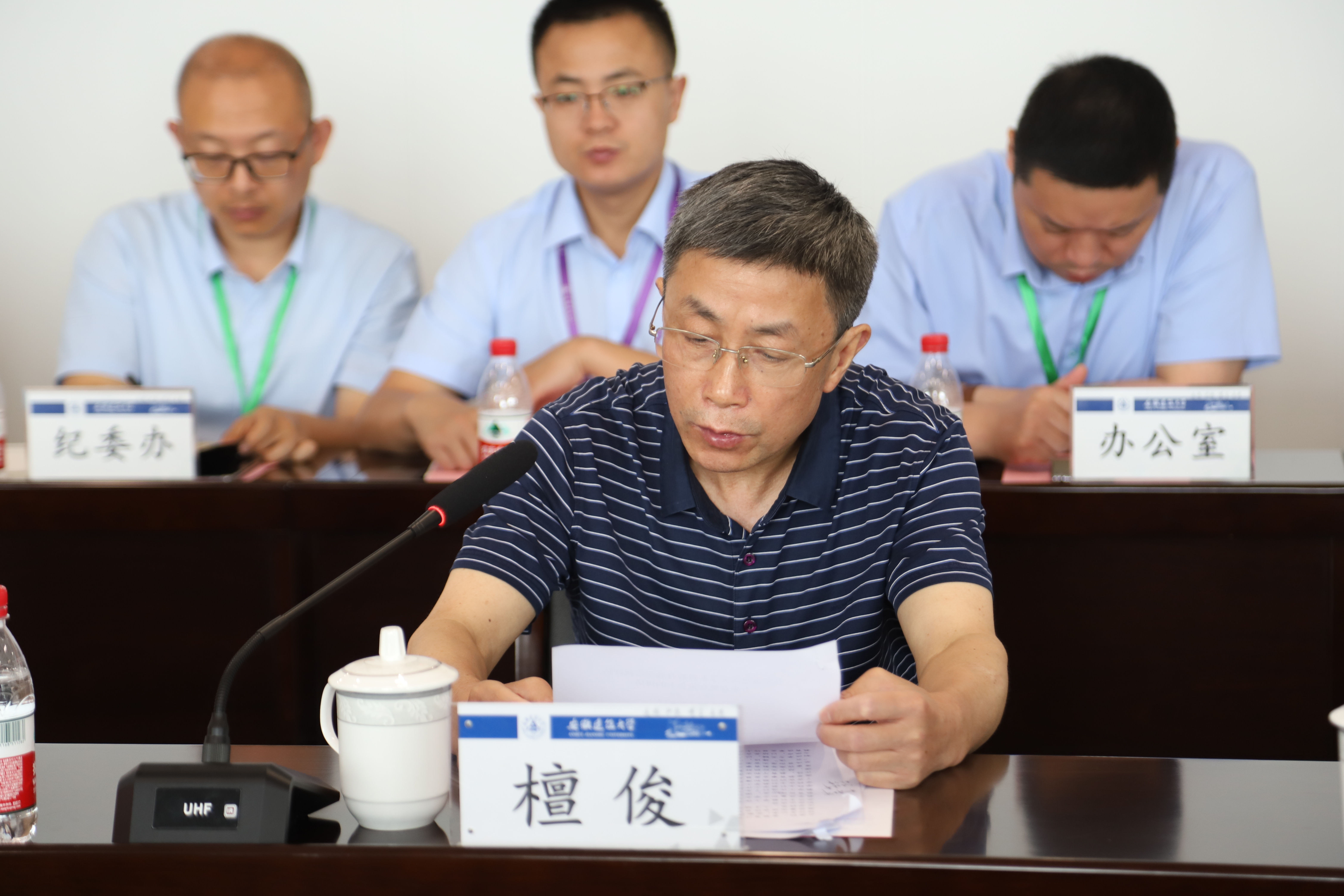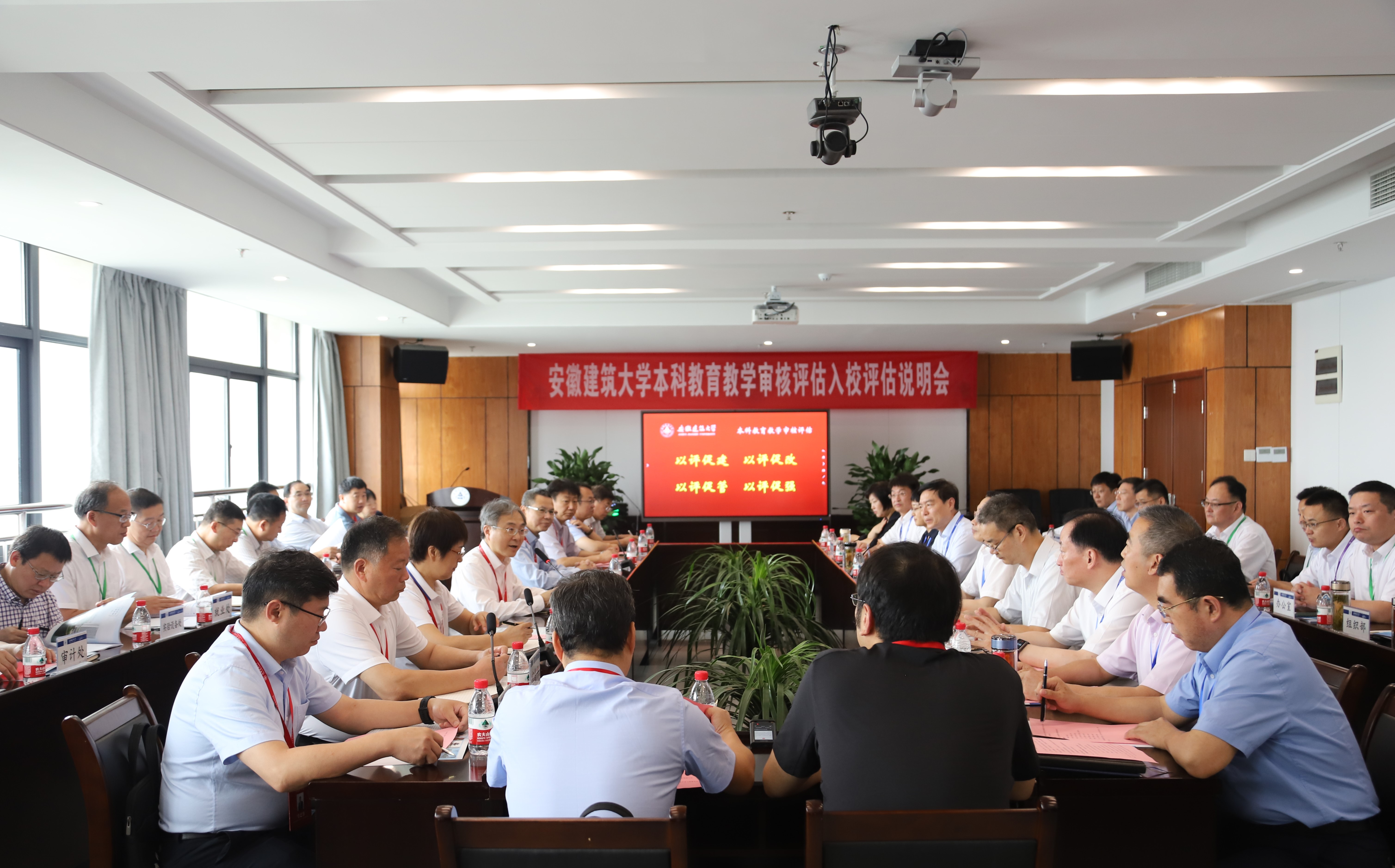 本网讯 6月19-21日,beat365官方网站接受本科教育教学审核评估专家组入校评估考察。6月19日上午,入校评估说明会在南校区实验综合楼21楼第一会议室召开。审核评估专家组组长、上海科技大学常务副校长印杰,专家组成员五邑大学党委书记张焜、河北体育学院党委副书记曹荣、山东建筑大学副校长邱立平、安徽理工大学副校长宫能平、东北林业大学教务处处长李明泽、南京信息工程大学教务处处长马廷淮、安徽农业大学高教研究所所长方明,项目管理员郑光才,秘书许凯、李娟,安徽省教育厅高等教育处副处长朱永国出席说明会。全体校领导、各职能部门和教学单位党政主要负责人参加会议。会议由印杰主持。