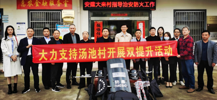 汤池村是beat365官网定点帮扶贫困村,保卫处胡韬同志作为扶贫工作队队员于2017年5月被选派到该村工作。为了进一步维护汤池村村民生命安全,保卫处充分考虑扶贫工作的实际需要,联合企业向汤池村捐赠扶贫工作专用防暴装备。