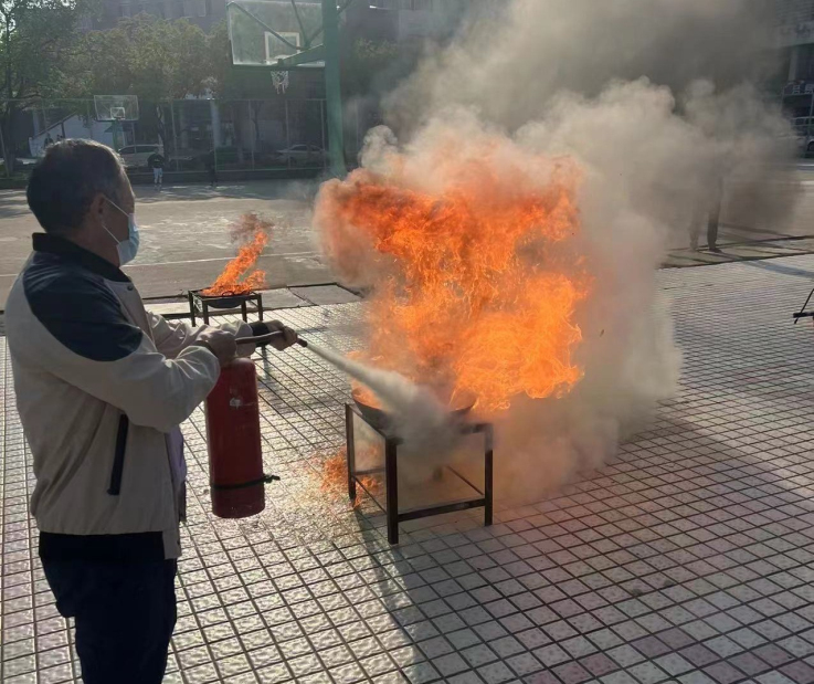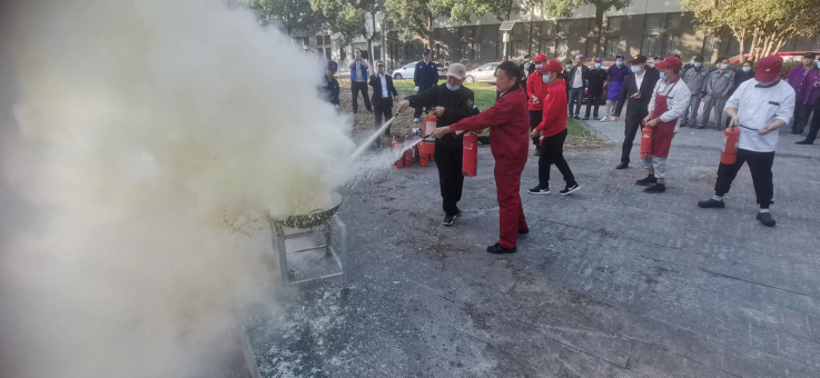 下午,在南北校区组织新入职的辅导员以及保卫、餐饮、快递、超市等场所工作人员现场操作使用干粉灭火器。