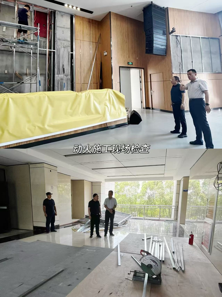 校领导带队深入校内公共区域及校内施工现场等校园重点区域,展开细致排查。在消防设施检查中,查看灭火器压力与有效期,测试消火栓水压与出水情况;在徽风楼二楼报告厅施工动火现场,检查组重点检查动火审批流程是否规范、灭火器材配备是否充足有效、施工人员资质是否合规,要求现场负责人严格落实“三清三关”制度,杜绝违规操作。