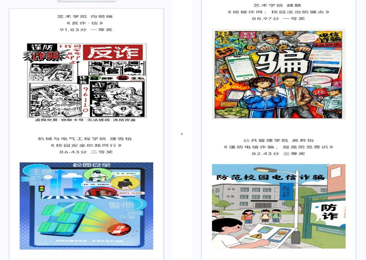 本次绘画大赛围绕“防范电信诈骗”和“交通安全教育”两大核心主题,同学们纷纷拿起画笔,以独特的视角、丰富的想象力和精湛的技艺,将抽象的安全概念转化为一幅幅具体、直观、富有感染力的视觉艺术作品。