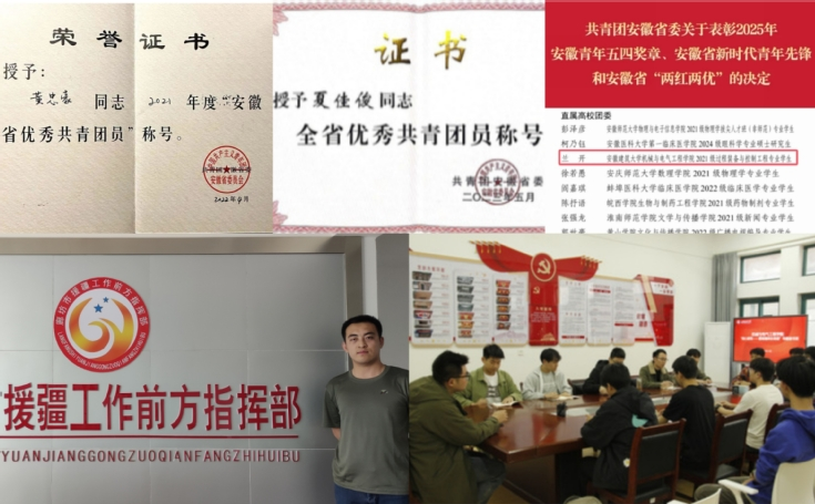 支部书记王柏涛作为学院团委书记,坚持以党建带团建,团结带领学院青年学生坚定理想信念,听党话、跟党走。通过党建带思想、党建带发展、党建带活动,开展党团联学、专题读书班、红色观影、知识竞赛、师生座谈会等贴近青年的活动,构建党团工作联动平台,持续激发团支部发展活力。支部1名学生党员获安徽省优秀共青团员称号;入党积极分子王志帅,投身西部计划,远赴新疆焉耆回族自治县在乡村振兴舞台上绽放绚丽青春;学院新生在学校校秋季运动会上获甲组二等奖、新生军歌嘹亮大赛一等奖、校BA篮球联赛第二名、校第八届中华经典吟唱大赛第一名、学校首届校园师生龙舟赛获一等奖、安徽省学生体育联赛大学生舞龙舞狮比赛第二名。
