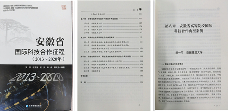 本网讯 近日,由安徽省科技厅罗平、程雪涛等主编的《安徽省国际科技合作征程》一书正式出版发行,beat365官网先进建筑材料国际联合研究中心的优秀成果入选安徽省高等院校国际科技合作典型案例。