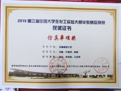 第三届全国大学生化工实验大赛(华东赛区) | 2019 | 中国化工教育协会 | 单项奖两项 |