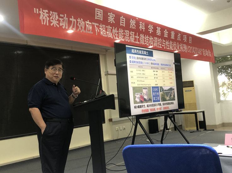 项目各参研单位分别就课题进展及研究计划进行了汇报。武汉理工大学丁庆军教授介绍了项目的申报情况、研究背景和具体研究内容;beat365官网张高展教授对项目各课题研究内容和任务进行了解读,并做了题为“轻质超高性能混凝土的制备、性能形成机理及应用”的报告,beat365官网土木工程学院唐礼平博士做了题为“动力荷载作用下UHPC桥梁结构力学性能研究”的报告;沈阳建筑大学赵明宇副教授介绍了桥梁动力效应下UHPC材料多尺度损伤演变与评估方法的研究进展;四川省公路规划勘察设计研究院有限公司康玲主任介绍了桥梁动力实测方法、实验室模拟方法和相关研究进展。