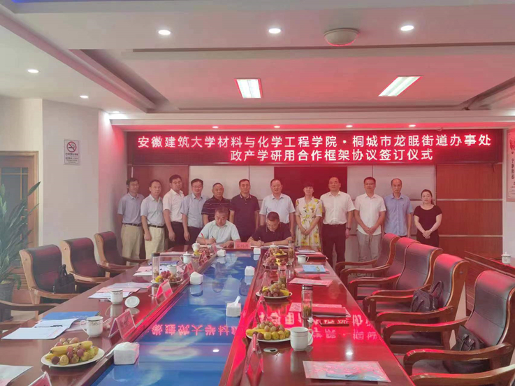 本网讯 7月26日,材化学院和桐城市龙眠街道办事处政产学研用合作框架协议签订仪式在桐城市龙眠街道举行。材化学院党委书记万德军,桐城市委常委、副市长章友厚出席签约仪式并讲话。桐城市政协副主席胡艳凌出席签约仪式。