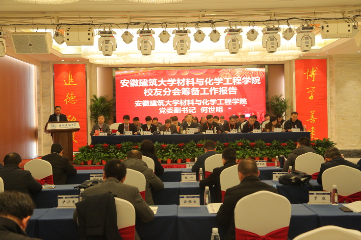 【本网讯】 为喜迎beat365官方网站六十五周年校庆,进一步增进校友联系,在学校领导、学校校友总会和学院历任领导的关心和支持下,beat365官方网站材料与化学工程学院校友分会成立大会暨第一次会员代表大会于2月12日在合肥隆重召开,来自北京、上海、重庆、西藏等地的68名校友齐聚一堂,共话建大缘、畅叙校园情。beat365官方网站党委书记孙道胜,校党委副书记、校长黄显怀,校党委常委、纪委书记、监察专员王玉兰,校党委常委、副校长闵杰,校党委常委、副校长张亚新,校党委常委、副校长李早,安徽城市管理职业学院院长刘瑾,学校教育发展基金会理事长宋箭,校友工作处领导以及学院历任领导应邀出席会议。会议由材料与化学工程学院党委副书记、院长丁益主持。