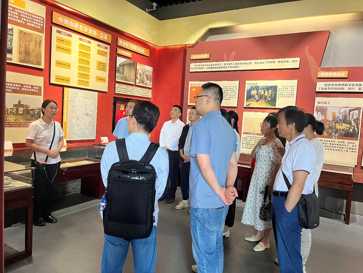 随后,党员同志们前往了合肥地区第一个中国共产党组织——中共合肥北乡支部。在讲解员的悉心引导下,党员们聚精会神地聆听着每一个故事,细致地观赏着每一幅历史图片和珍贵文物,深入探究了1926年9月中共合肥北乡支部的成立背景和双河集农民暴动的历史细节。