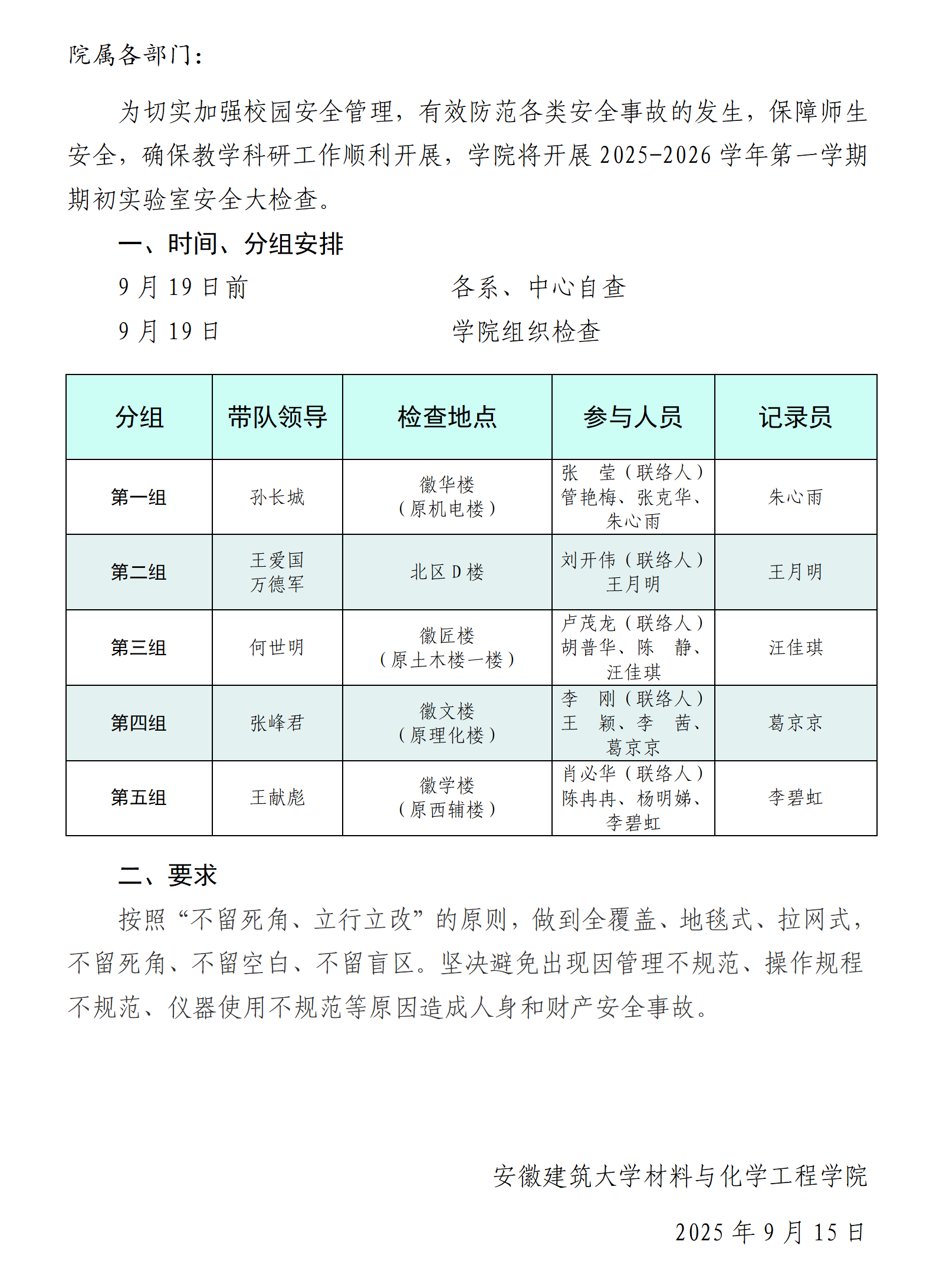 关于开展2025-2026学年第一学期期初实验室检查工作的通知