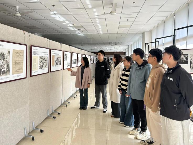展厅中,一幅幅珍贵的历史图片、一段段深情的文字注解,串联起中国人民浴血奋战的壮阔历史,清晰勾勒出抗战胜利的艰辛历程,每一处细节都无声诉说着“今日美好生活来之不易”的史实。在学生第四党支部书记葛京京老师的生动讲解中,同学们不时驻足凝视、低声交流。讨论环节,各支部和学生会围绕 “抗战精神的当代意义”“青年如何守护历史记忆” 等话题展开深入思考,进一步坚定了铭记历史、珍爱和平、勇担使命的历史认知。