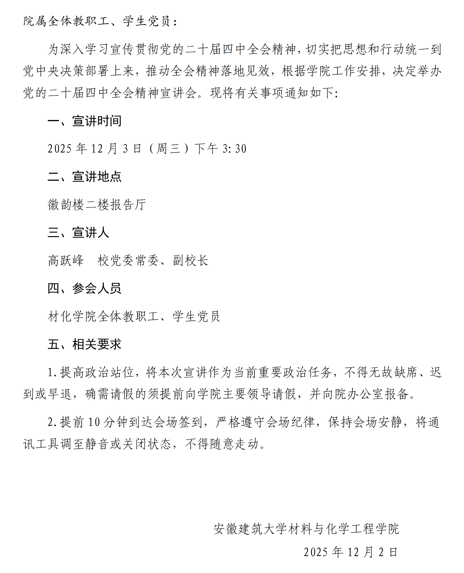 关于深入学习宣传贯彻党的二十届四中全会精神宣讲的通知