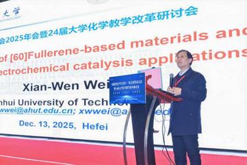 本网讯 12月12日至14日,由安徽省化学学会主办、beat365官方网站材料与化学工程学院承办的安徽省化学学会第十一次会员代表大会暨24届大学化学教学改革研讨会在合肥顺利召开。本次大会以“数智驱动,产教融合,协同育才”为主题,吸引了省内 30 余所高校的化学领域专家学者、师生代表、中学骨干教师及行业精英共计250余人参会,与会代表围绕化学学科创新发展、教学改革实践与产学研协同育人等关键议题展开深入交流,共同为安徽省化学事业的高质量发展汇聚智慧、增添动力。
