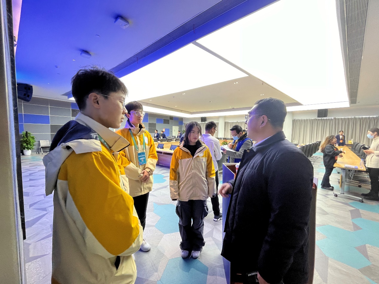 蔡国军教授关怀志愿者学生并参与互动,分享科研心得和教育经验。这一举措更具人文关怀色彩,也为青年学子搭建了与科技行业专业人士交流的平台。