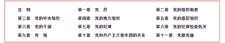 第十条 党是根据自己的纲领和章程,按照民主集中制组织起来的统一整体。党的民主集中制的基本原则是: