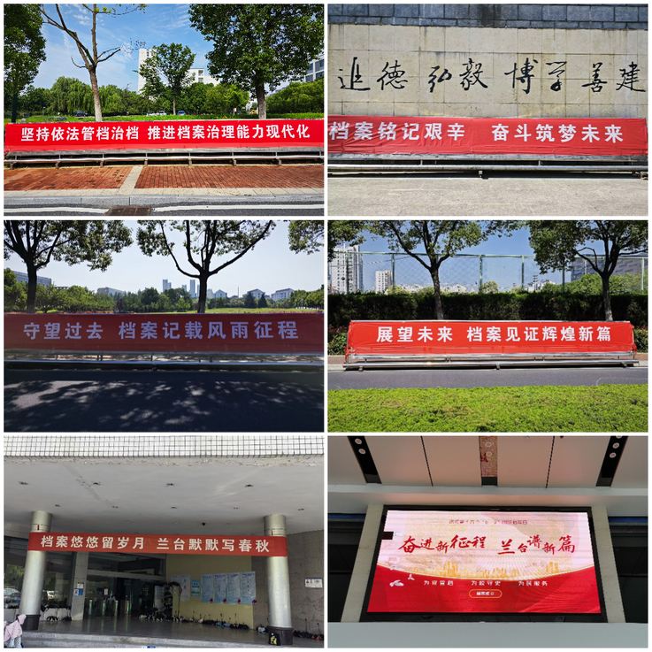 6月5-9日集中宣传周期间,档案馆在南北区校园醒目位置悬挂横幅、播映电子屏演示文稿,突出活动主题,烘托宣传氛围。组织线上知识竞赛,内容涉及档案法律法规、档案实务及档案业务基础知识、档案文化等多个领域,引发兼职档案员、档案工作分管领导和档案工作委员会成员的热情参与。专职档案人以兰台谱新篇始终在路上的心态,加入“兰台之家”公众号联动单位,参赛、阅读专业书籍、观看专题讲座、参加业务培训,保持奋进新征程的良好状态。