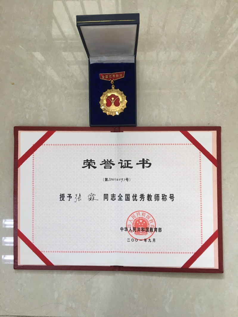 张霖捐赠全国优秀教师称号奖章以及荣誉证书