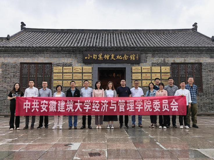 经管学院党委一行首先到寿县革命烈士陵园敬献花篮并重温入党誓词,然后参观了小甸集特支纪念馆、怀上中学补习社、廉政文化园、党旗文化广场,一件件文物、一张张图片无不诉说着安徽早期党组织的辉煌历史,使大家备受教育和启迪。中共小甸集特支于1923年12月在寿县小甸集小甸小学成立,直属党中央领导,是安徽省最早的党组织,纪念馆通过文物、图片、蜡像、绘画等形式展现历史事件和英雄人物,彰显特支的重要历史地位;怀上中学补习社于1924年暑假,由上海大学党组织派遣的党员胡允恭、吴云等六人在小甸集曹小郢子开办,并建立了怀上中学补习社党支部,直属党中央领导,被称为“安徽最早的党校”,场馆展示了北洋军阀统治下一群热血青年追求革命真理的热烈场景;廉政文化园由廉政文化长廊、莲花池和廉政碑林三部分组成,通过先烈、名人的廉洁警语、事迹、故事展示,教育和引导广大党员干部分辨善恶美丑,提高廉政文化素质。