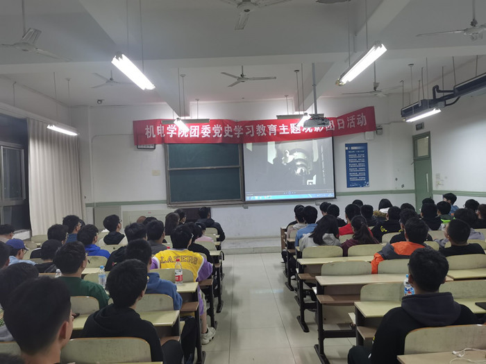 本网讯 为深入开展党史学习教育,贯彻落实习近平新时代中国特色社会主义思想和党的十九大精神,进一步引领广大青年汲取党史营养、传承红色基因。机电学院于3月26日开展“影说党史”主题观影活动,学院入党积极分子及团员骨干参加了活动。