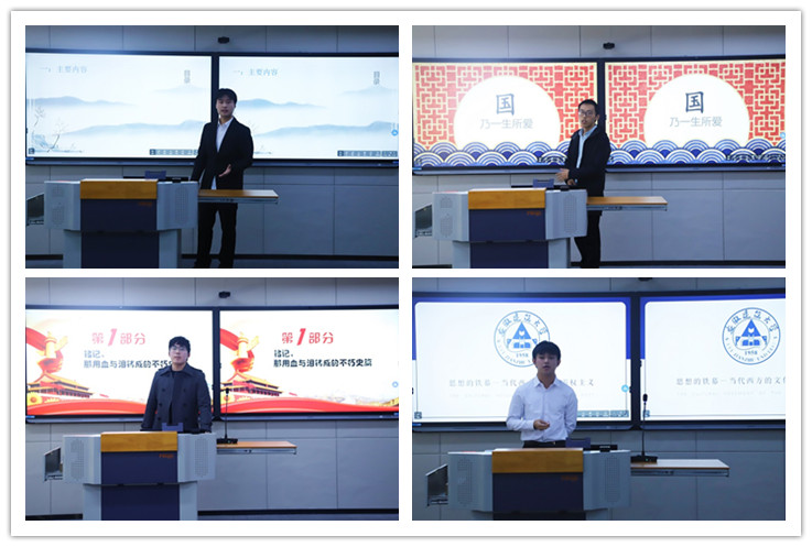 决赛中,8位同学以“拒绝内卷”、“思想的铁幕——西方文化霸权主义”、“中国模式——文明型国家的崛起”、“中国精神的时代内涵和弘扬途径”、“传承红色基因,赓续红色血脉”、“诚信在当代的意义”、“领悟人生真谛,把握人生方向”、“国乃一生所爱”等为主题,进行了形式多样的现场教学展示。各参赛选手全情投入,将饱满的热情、振奋的精神、铿锵的语言融入有趣的讲课展示之中,赢得了在场评委和观众阵阵热烈掌声。