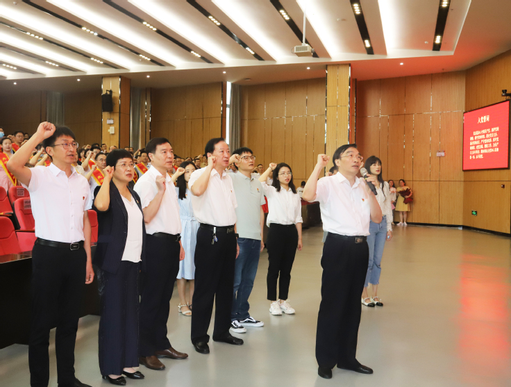 大会在雄壮的《国歌》声中拉开序幕,校党委书记孙道胜带领全体党员重温入党誓词。