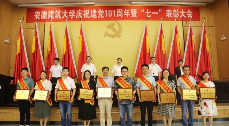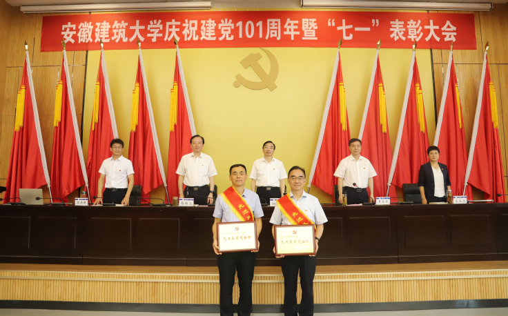 本网讯  7月1日,学校在南区实验综合楼报告厅隆重召开庆祝中国共产党成立101周年暨“七一”表彰大会。校领导孙道胜、黄显怀、蔡新立、王玉兰、张亚新出席大会,“光荣在党50年”两名老党员、全校副处及以上干部、党支部书记,受表彰的先进基层党组织代表、优秀共产党员和优秀党务工作者,新发展的党员代表参加会议。校党委副书记、校长黄显怀主持会议。
