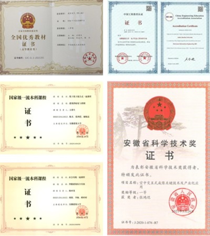 学院影响力与贡献度逐年增强。“建筑电气与智能化专业创新型人才培养教师团队”获省教育厅推荐参评全国高校黄大年式教师团队;建筑电气与智能化专业教研室获批全国首批虚拟教研室建设试点单位;“建筑电气与智能化专业中外教材比较研究”项目获批教育部高等教育中外教材比较研究项目立项;电子信息工程专业、计算机科学与技术专业、建筑电气与智能化专业获批国家一流本科专业;“建筑供配电与照明”、“智能建筑综合实验”获批国家级一流本科课程;5部主编教材入选住房和城乡建设领域学科专业“十四五”规划教材;“建筑电气”获首届全国教材奖二等奖。“安徽省古建筑智能感知与高维建模国际联合研究中心”获批第四批安徽省国际科技合作基地;申报立项教育厅协同创新项目4项,国家自然科学基金项目3项,省部级项目17项,承担横向项目19项,获得各类知识产权111项,推进成果转化12项。学院张鸿恺同志获2020年安徽省科技进步一等奖,邵慧同志和颜普同志获得2020年安徽省科技进步三等奖。