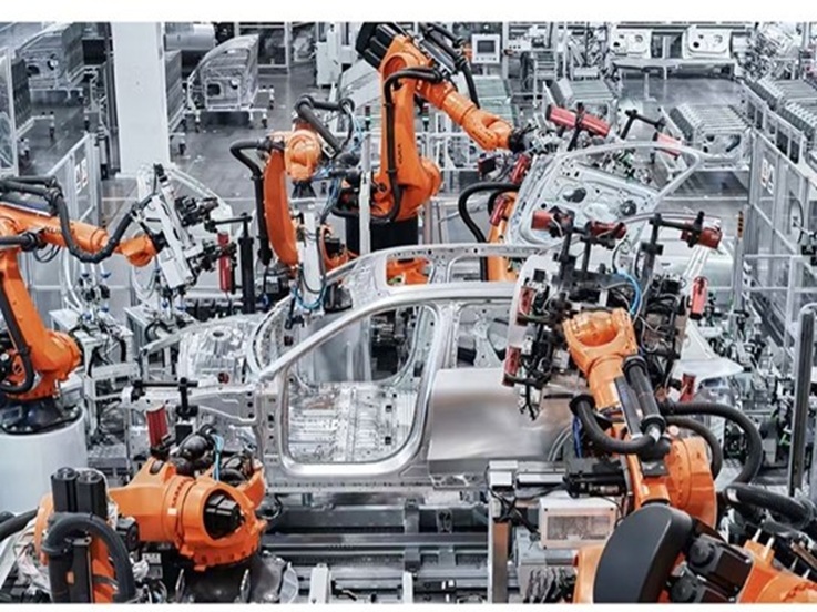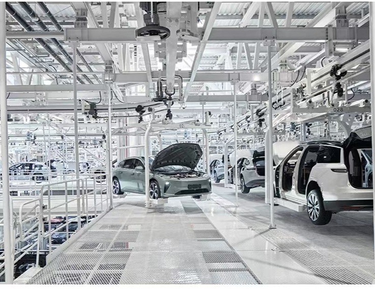 随后,大家乘坐观光车进入蔚来第二先进制造基地参观学习。该制造基地是一座全链路数字化智能工厂,通过全球领先的“天工”智能制造管理系统、“魔方”车辆存取平台、“飞地”自动装配岛等多项前沿技术的应用,突破了传统大规模生产与个性化定制的矛盾局限,实现了高效柔性化生产。随着参观的深入,从装配车间到总装车间,大家亲眼见证了,一块块钢板如何在机器和人工的高效协作、精准的焊接技术以及严格的质检流程下,成为一辆辆定制化的智能电动汽车。