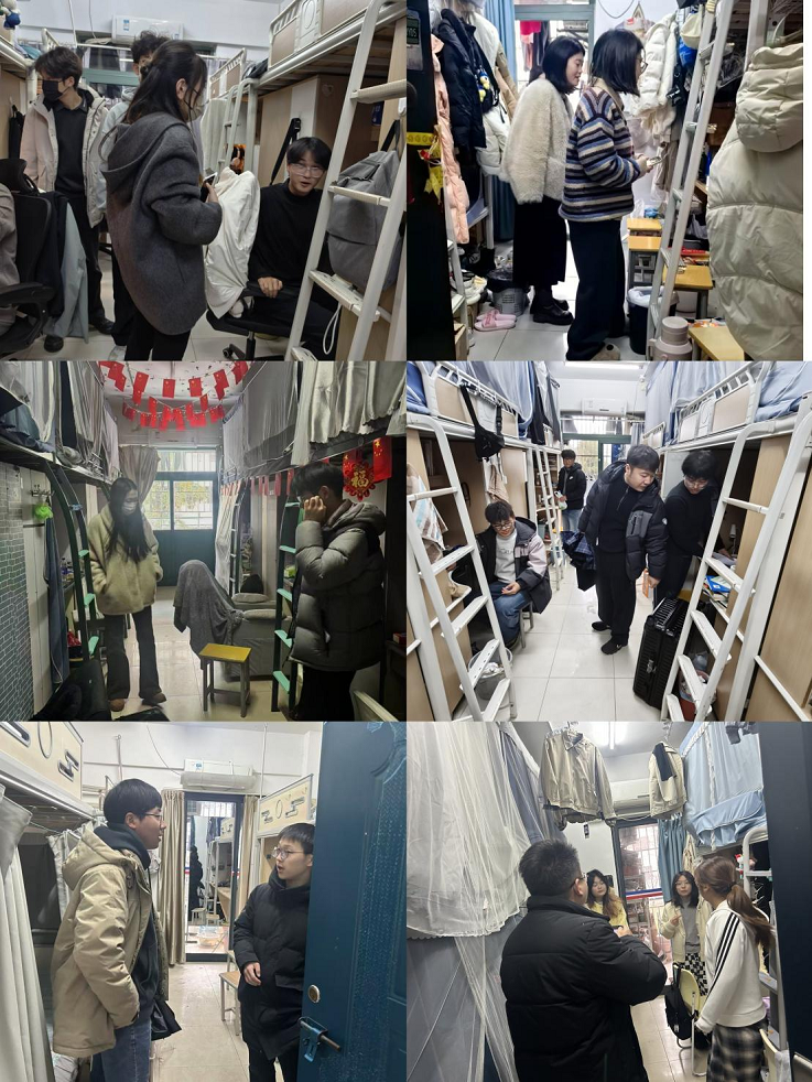 走访过程中,辅导员们同步检查宿舍内务卫生与文化建设情况,对物品摆放整齐、环境卫生整洁、氛围积极向上的宿舍予以表扬,引导学生树立“宿舍是我家,文明靠大家”的理念,自觉维护宿舍公共环境。鼓励同学们以宿舍为单位加强团结协作,共建整洁、温馨、文明、奋进的宿舍文化,以优良舍风带动学风、涵养校风,助力自身全面成长成才。