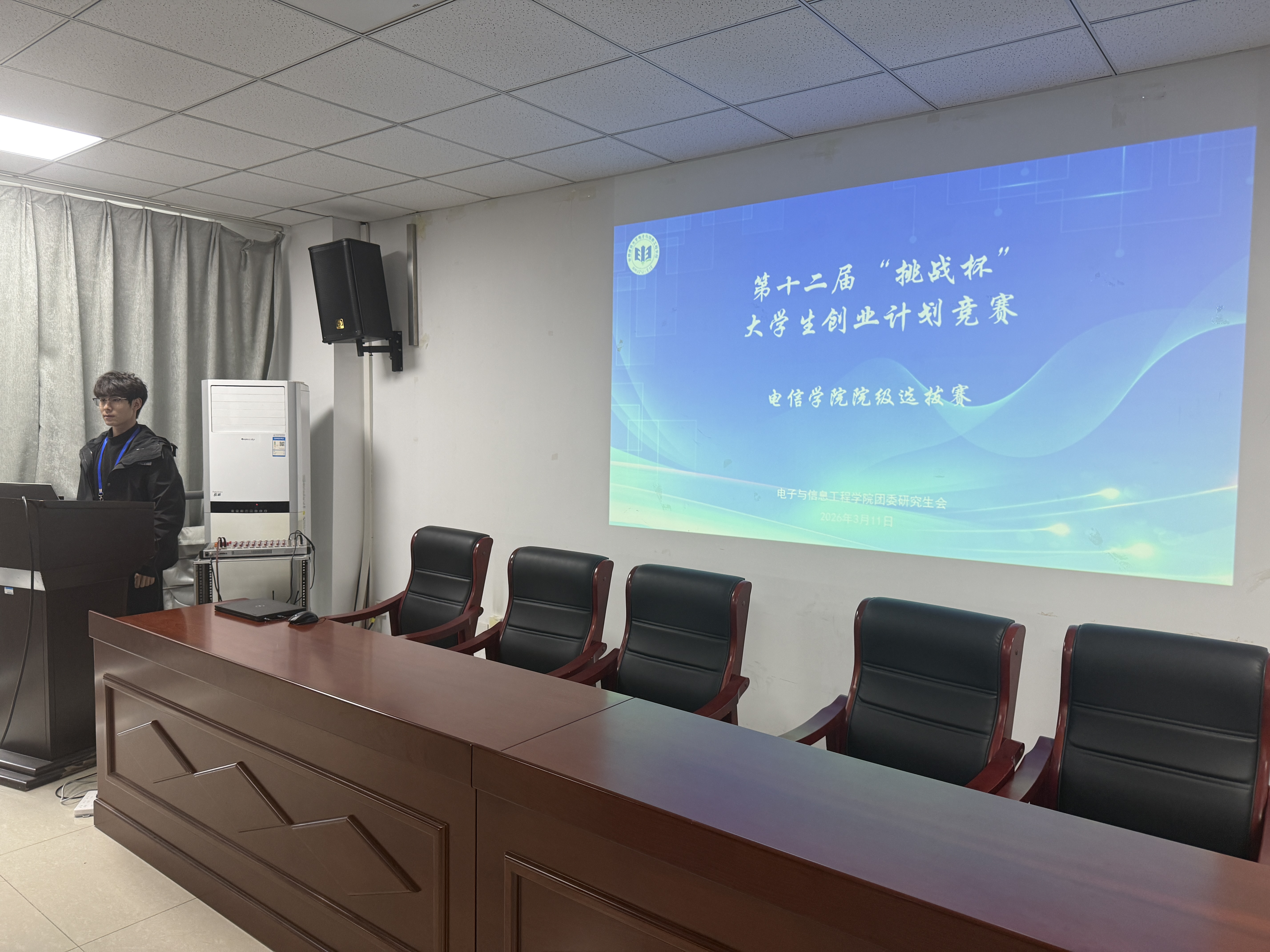 本网讯 为深入学习贯彻习近平新时代中国特色社会主义思想,全面落实创新驱动发展战略,引导广大青年学生紧扣国家重大需求、扎根行业前沿、践行青春担当,切实学生提升创新创业能力与社会实践水平,3月11日,电信学院于实验综合楼1106成功举办2026年“挑战杯”大学生创业计划竞赛院级选拔赛。本次活动学院各专业学子踊跃报名、精心备赛,经过前期初审筛选,共有18支学生团队成功晋级现场展示与答辩环节。