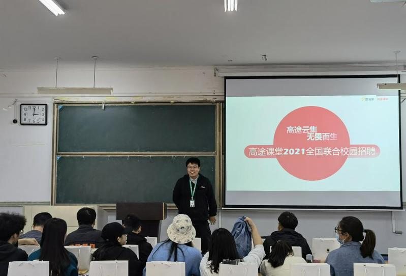 本网讯 为持续向毕业生提供更好的就业机会,公管学院邀请多家企业来学院组织专场招聘会。11月10日,大发地产合肥分公司与跟谁学教育合肥分公司走进公共管理学院,在东辅楼2102举办专场招聘会,2021届毕业生和部分18级学生参加了此次招聘会。