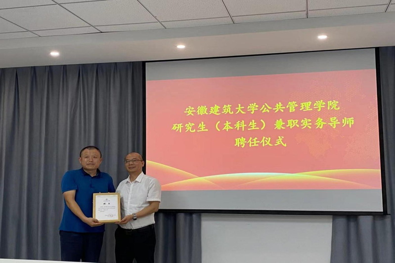 会上,黄佳豪对环安人才服务有限公司董事长叶松、国华工程科技集团有限责任公司总经理苗青、安徽远信工程项目管理有限公司董事长余松林等企业家受聘为学院研究生兼职实务导师,对环安人才服务有限公司总经理沈成、安徽远信工程项目管理有限公司总经理朱敏等企业高管受聘为学院本科生兼职实务导师表示祝贺,并对三家企业长期支持学院发展表示感谢,希望未来进一步深化校企战略合作,拓宽合作渠道,共同为社会培养高层次公共管理人才。